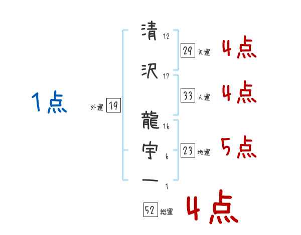 清沢龍宇一さんの画数の鑑定結果