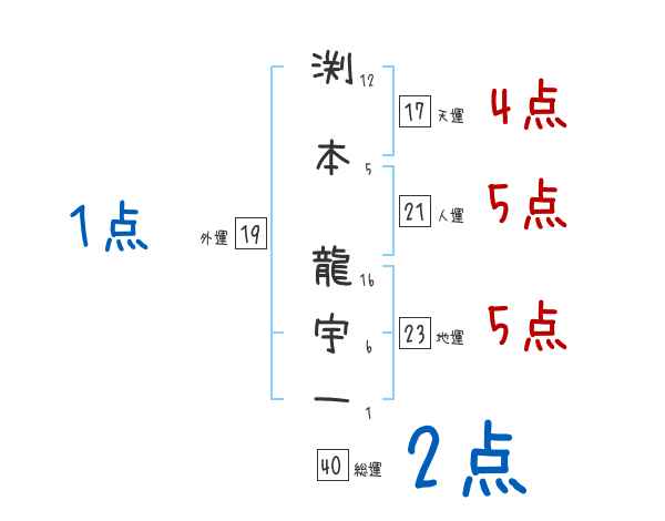 渕本龍宇一さんの画数の鑑定結果