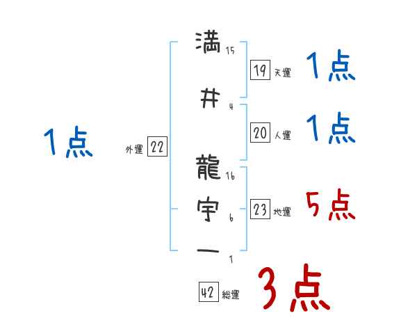 天運![]() | 満井龍宇一さんの天運は19画の1つ星!優れた才能を持ちますが、協調性が足りないことも。周りの人と協力する事を意識しましょう。 家系が持つ宿命的な運勢を表します。祖先から受け継いだ苗字ですので自分の力が及びません。家柄を象徴します。 |