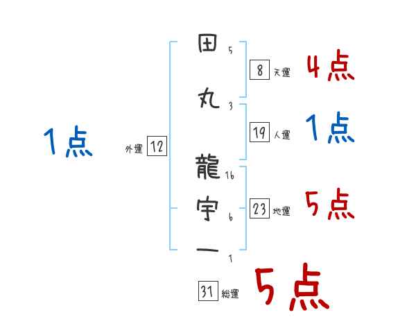 総運![]() | 田丸龍宇一さんの総運は31画の5つ星!社交性があり判断力に優れる。順風満帆な人生で円満な生活。 あなたの人生を表す1番重要な運勢です。生涯を通じて影響する総合運となり、主に50歳以降の晩年期に影響を及ぼします。 |