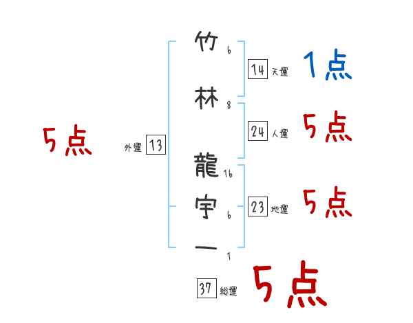地運![]() | 竹林龍宇一さんの地運は23画の5つ星!想像力に優れ活力がある。一代で成功し名誉を手に入れる。 個性を表す基礎的な運勢です。性格形成や対人関係、行動力など家庭環境に影響されます。主に誕生してから20歳くらいまでの若年期の運勢を表します。 |