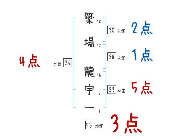 総運![]() | 簗場龍宇一さんの総運は53画の3つ星!やや見栄っ張りで虚栄心がある。散財に注意。 あなたの人生を表す1番重要な運勢です。生涯を通じて影響する総合運となり、主に50歳以降の晩年期に影響を及ぼします。 |