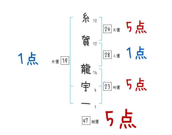 糸賀龍宇一さんの画数の鑑定結果
