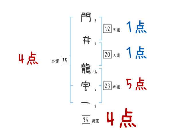 門井龍宇一さんの画数の鑑定結果