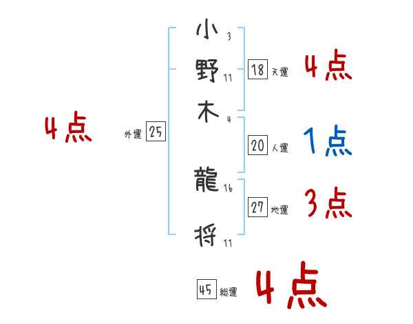 小野木龍将さんの画数の鑑定結果