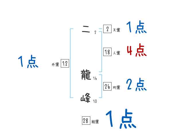 二龍峰さんの画数の鑑定結果