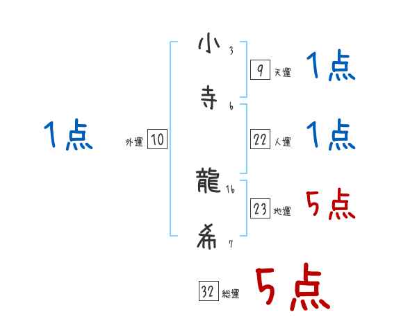 小寺龍希さんの画数の鑑定結果