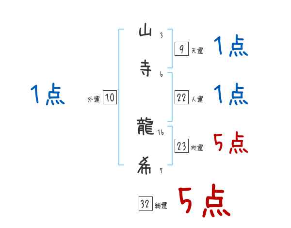 山寺龍希さんの画数の鑑定結果