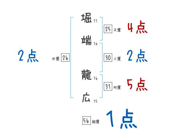 堀端龍広さんの画数の鑑定結果