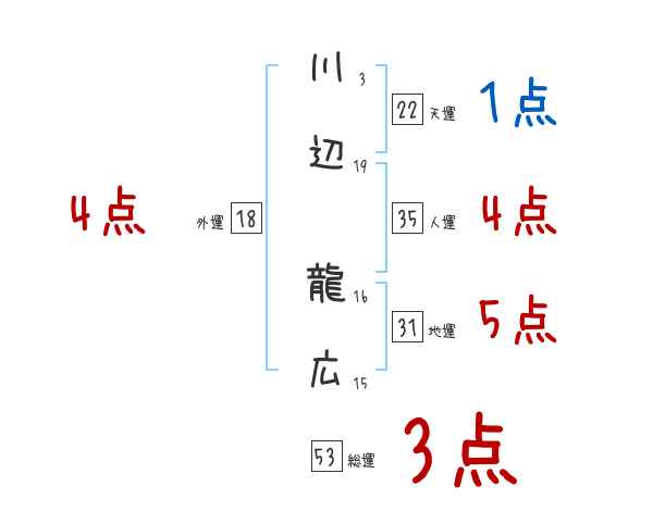 川辺龍広さんの画数の鑑定結果