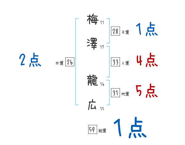 梅澤龍広さんの画数の鑑定結果