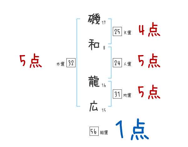磯和龍広さんの画数の鑑定結果