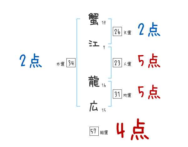 蟹江龍広さんの画数の鑑定結果