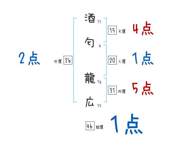 酒匂龍広さんの画数の鑑定結果