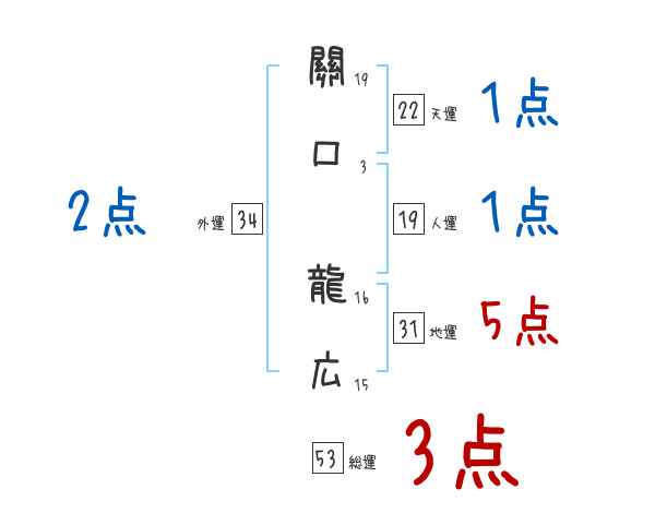 關口龍広さんの画数の鑑定結果