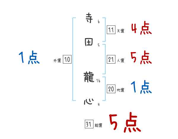 寺田龍心さんの画数の鑑定結果