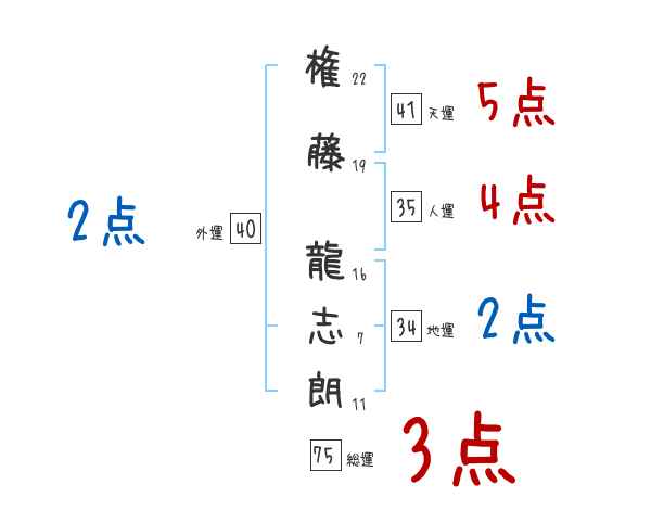 権藤龍志朗さんの画数の鑑定結果