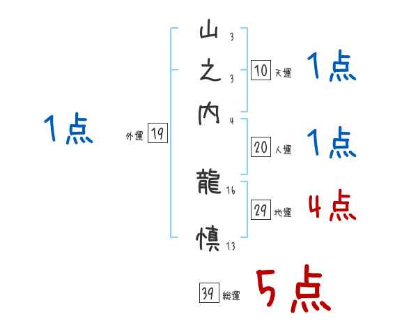 天運![]() | 山之内龍慎さんの天運は10画の1つ星!不安を感じやすい傾向。ストレスを抱えないように注意しましょう。 家系が持つ宿命的な運勢を表します。祖先から受け継いだ苗字ですので自分の力が及びません。家柄を象徴します。 |