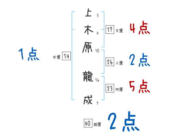 外運![]() | 上木原龍成さんの外運は14画の1つ星!人に対して優しいがストレスを溜め込みがち。人間関係のトラブルを避けるよう気をつけましょう。 生活面を象徴する運勢です。外部から受ける影響力を表し、結婚運、家庭運や職場、環境への順応性を表します。 |