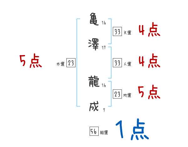 亀澤龍成さんの画数の鑑定結果