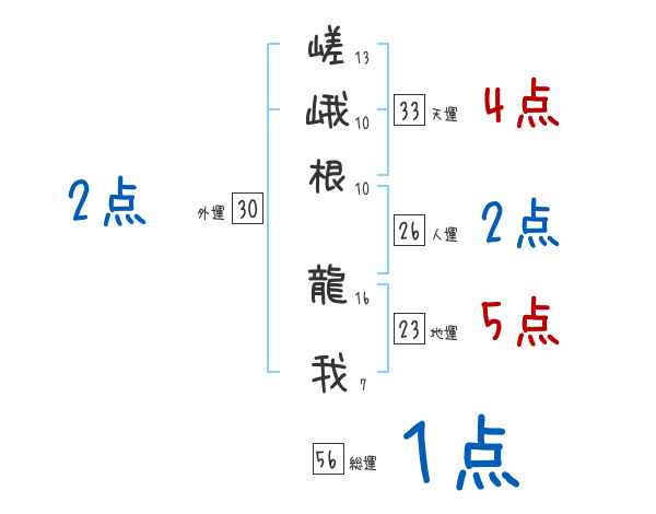 嵯峨根龍我さんの画数の鑑定結果