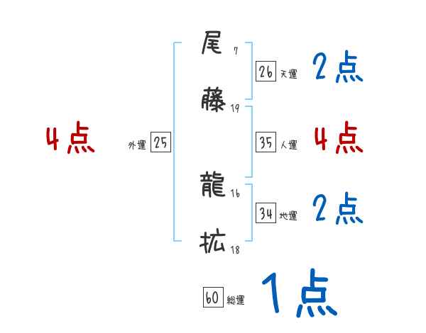 尾藤龍拡さんの画数の鑑定結果