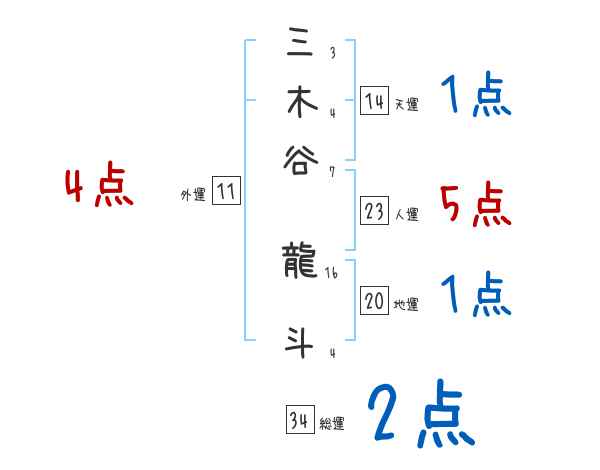 三木谷龍斗さんの画数の鑑定結果