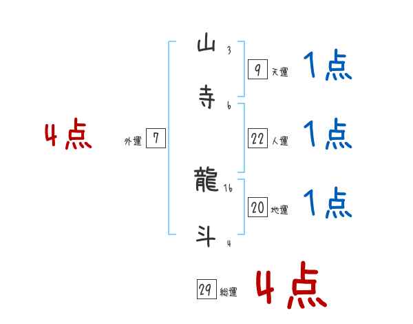 山寺龍斗さんの画数の鑑定結果