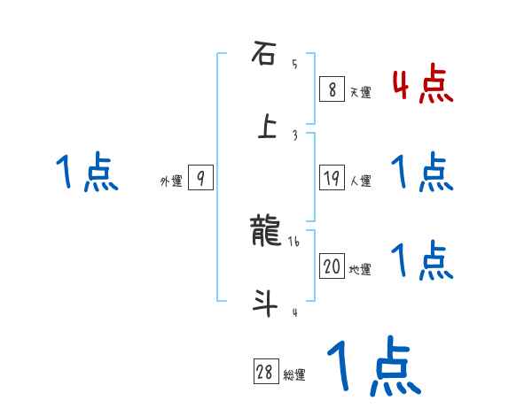 石上龍斗さんの画数の鑑定結果