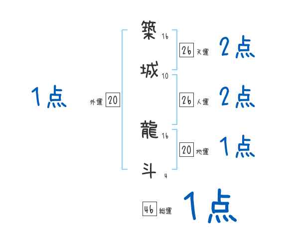 築城龍斗さんの画数の鑑定結果