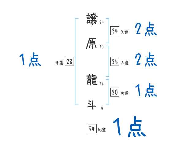 譲原龍斗さんの画数の鑑定結果