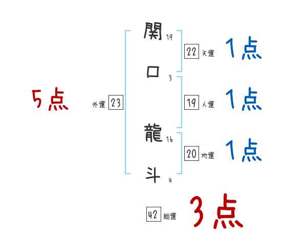 関口龍斗さんの画数の鑑定結果