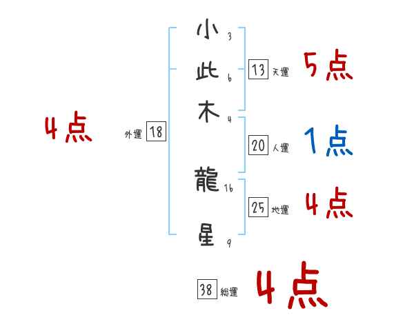 小此木龍星さんの画数の鑑定結果