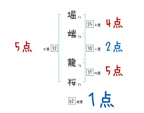 堀端龍桜さんの画数の鑑定結果
