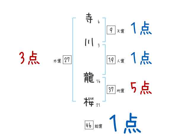 寺川龍桜さんの画数の鑑定結果