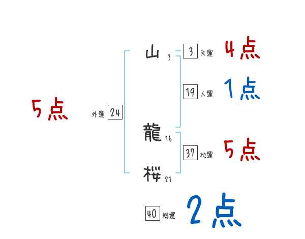 天運![]() | 山龍桜さんの天運は3画の4つ星!活動的で才能に恵まれ、多くの信頼を得る。希望に満ち成長する。 家系が持つ宿命的な運勢を表します。祖先から受け継いだ苗字ですので自分の力が及びません。家柄を象徴します。 |