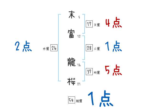 末富龍桜さんの画数の鑑定結果