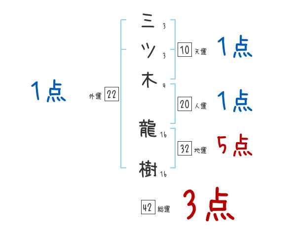 三ツ木龍樹さんの画数の鑑定結果