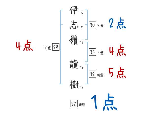 伊志嶺龍樹さんの画数の鑑定結果