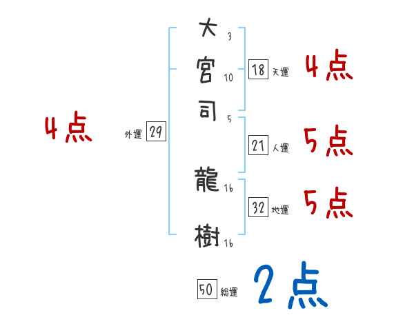 大宮司龍樹さんの画数の鑑定結果