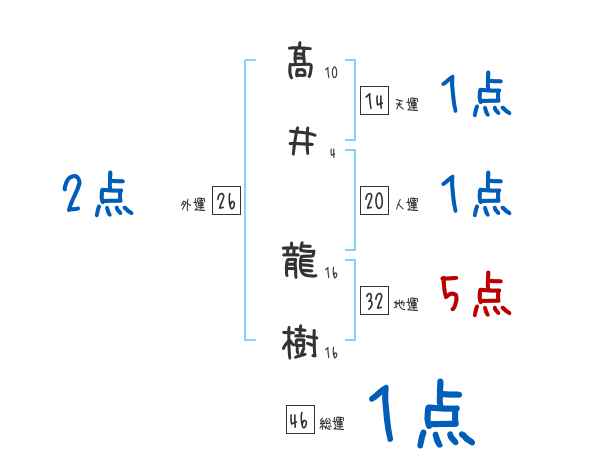 髙井龍樹さんの画数の鑑定結果
