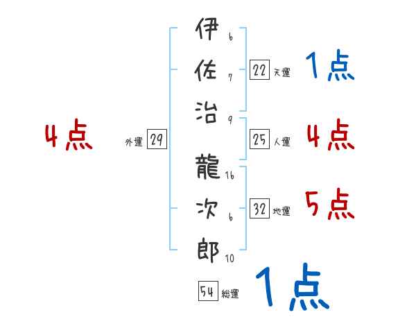 伊佐治龍次郎さんの画数の鑑定結果