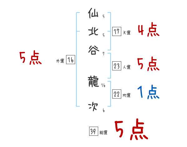 仙北谷龍次さんの画数の鑑定結果