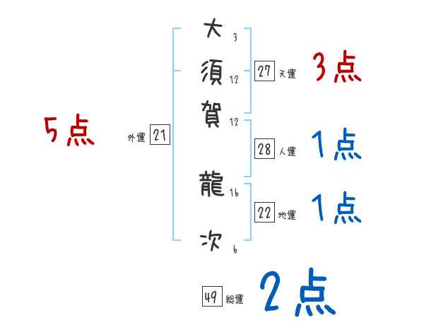 大須賀龍次さんの画数の鑑定結果