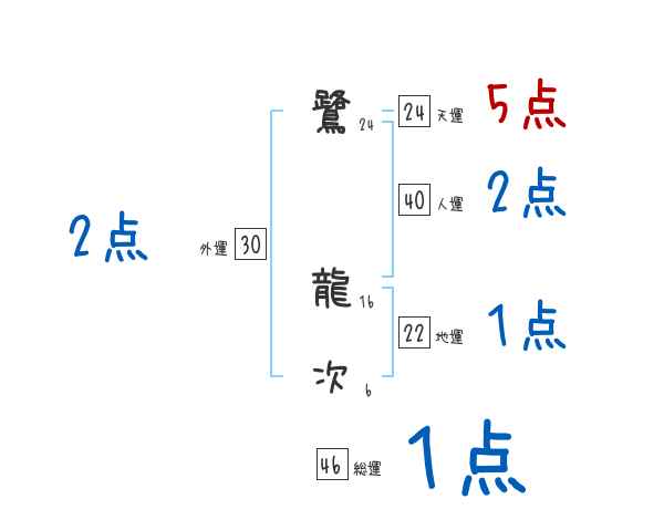 鷺龍次さんの画数の鑑定結果