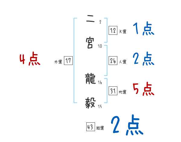 二宮龍毅さんの画数の鑑定結果