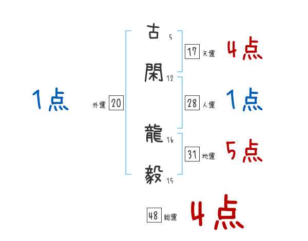人運![]() | 古閑龍毅さんの人運は28画の1つ星!家庭環境に注意。スポーツで活躍できる能力があるかも。 性格や才能などを表す2番目に重要な運勢です。人間関係や協調性、社会的な成功に影響します。主に20歳から50歳ぐらいまでの中年期の運勢を表します。 |