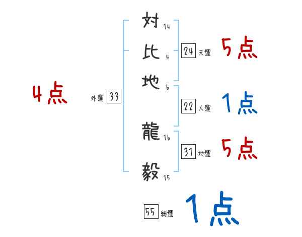 対比地龍毅さんの画数の鑑定結果