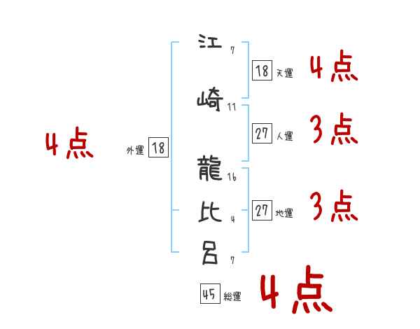 江崎龍比呂さんの画数の鑑定結果