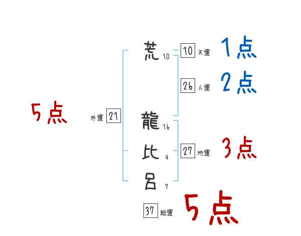 荒龍比呂さんの画数の鑑定結果